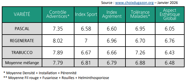 Classée au top de sa catégorie, la variété REGENERATE assurera au gazon un très bel aspect esthétique mais également une excellente résistance aux conditions difficiles (stress hydrique, piétinement intensif, …).